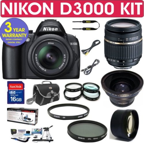 BRAND NEW NIKON D3000 Digital SLR Camera + Tamron AF 18-250mm Zoom Lens + .43x Wide Angle Lens + 2x Telephoto Lens + 4 Piece Macro Kit + 3 Year Celltime Warranty Feature | Sale - Review & Buy at Cheap Price